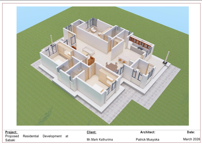 This proposed residential development in Sabaki, Machakos County presents a well-designed 3-bedroom bungalow ideal for modern family living. The property features a spacious lounge, dedicated dining area, and a contemporary kitchen complete with pantry and laundry space.